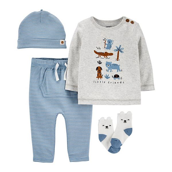 This is just part of what makes children special. Everything you need for a newborn boys first outfit is conveniently bundled in this handy take me home set. Strong side snaps keep up with wear.